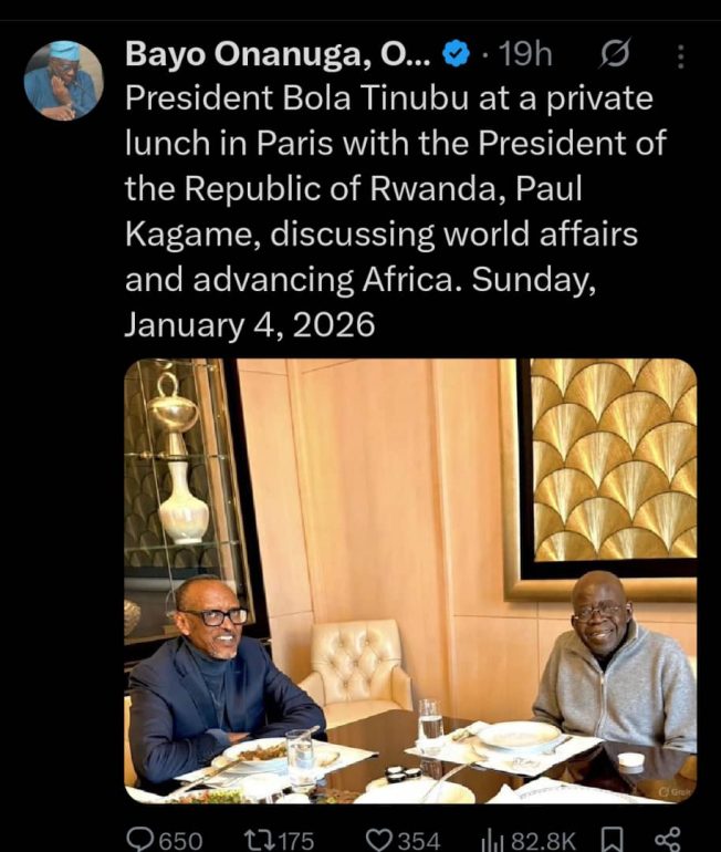 According to the statement, President Tinubu and President Kagame met in Paris on Sunday, where they had lunch together. The two leaders later joined French President Emmanuel Macron for dinner the same evening.